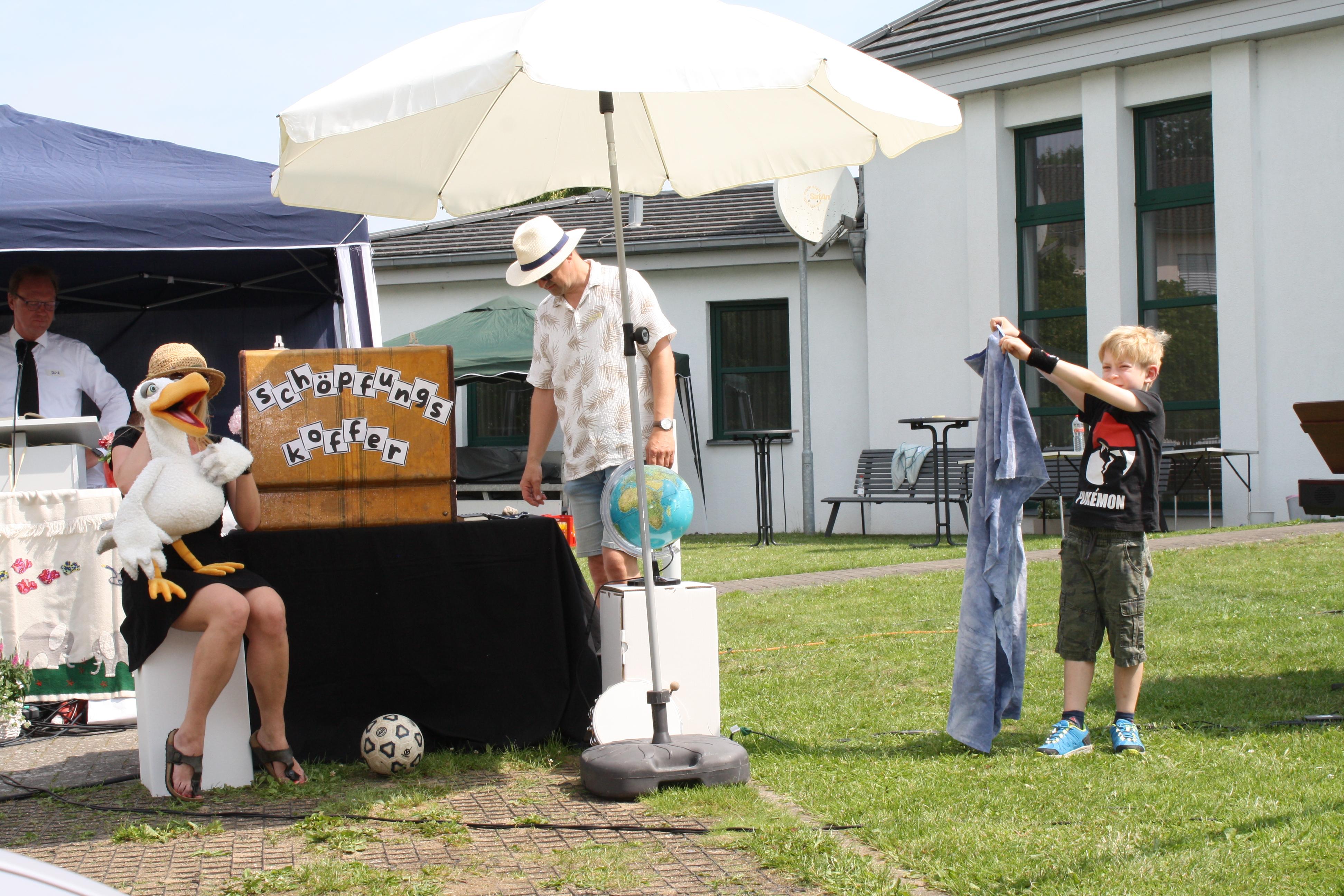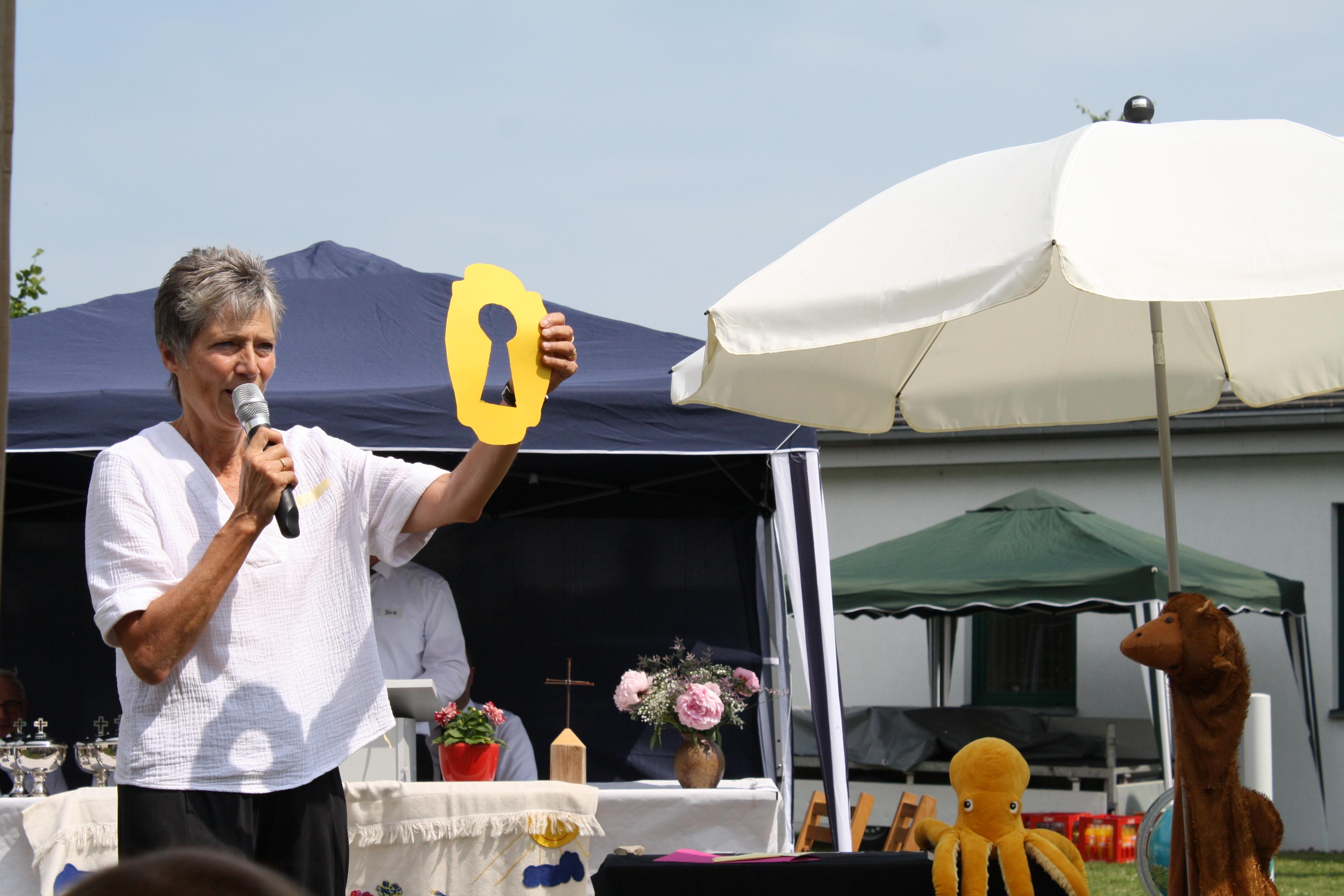 Nach dem Textwort gestaltete Schwester Annemarie Bendiks aus der Gemeinde Wismar mit ihrer Möwe auf witzige und kindgerechte Weise mit Unterstützung der Kinder die Schöpfungsgeschichte. Im Anschluss machte Diakonin Anja Zorn noch einmal deutlich, wie wichtig es ist, Gottes Schöpfung zu bewahren.